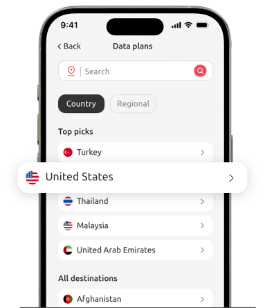 Find us on the Play Store/App Store. Navigate to your desired country and pick your data plan.